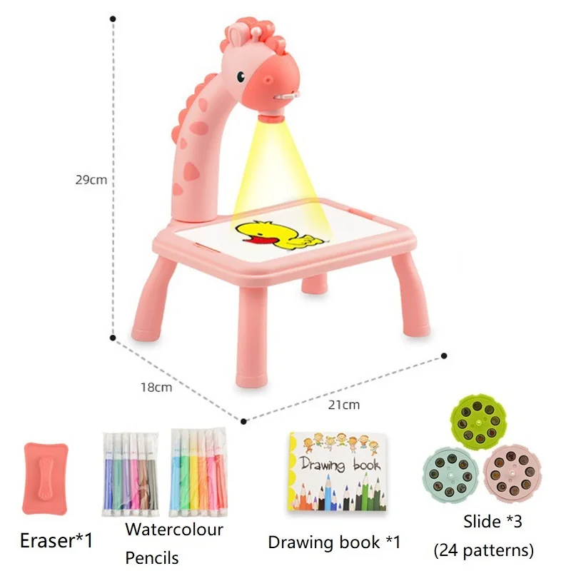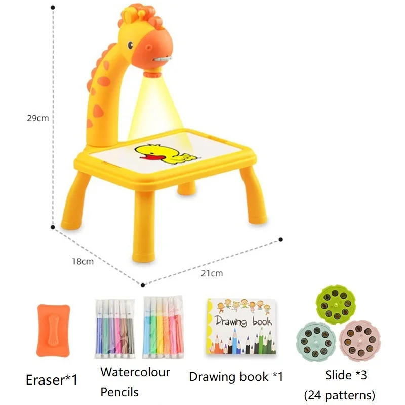 شجع إبداع طفلك مع طاولة الرسم والتلوين الذكية الصفراء، مزودة بمشروعور LED يساعد الأطفال (3+ سنوات) على رسم أشكال ممتعة بسهولة. آمنة، غير سامة، وخالية من الفوضى، تناسب الآباء المشغولين. تعزز المهارات الحركية والتركيز.