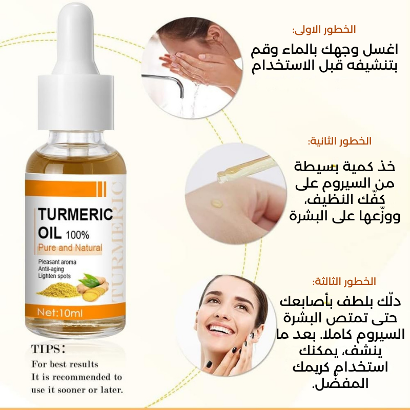 زيت الكركم النقي مستخلص من جذور الكركم الطبيعي، بتركيبة غنية بالمواد المضادة للأكسدة والمكونات النباتية، يمنح بشرتك إشراقة صحية، ويكافح علامات التقدّم في السن والبقع الداكنة.