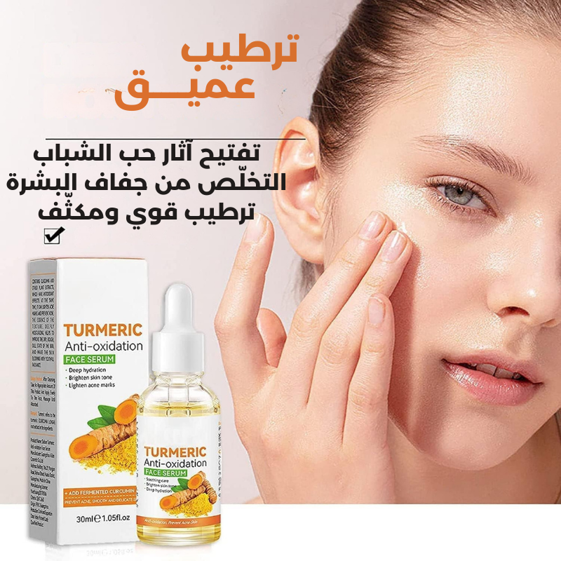 ترطيب طبيعي: السيروم غني بمكوّنات طبيعية مثل خلاصة الكركم وزيت الزيتون وغيره. يرطّب البشرة بعمق، ينعشها ويغذّيها💧